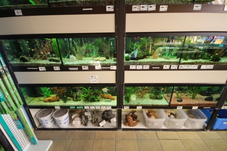 Aufgereiht in 21 Aquarien mit Einzelfilterung bieten